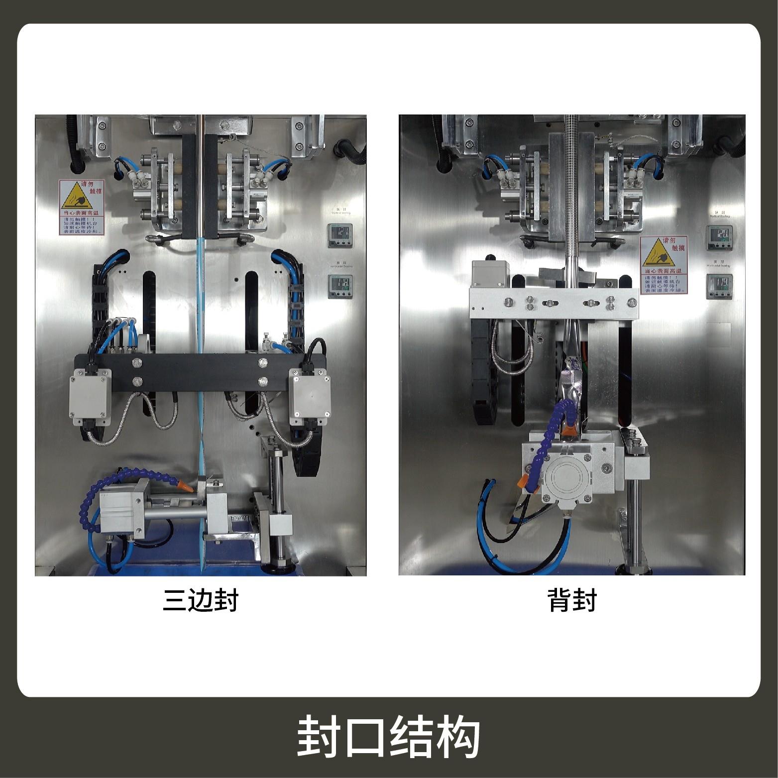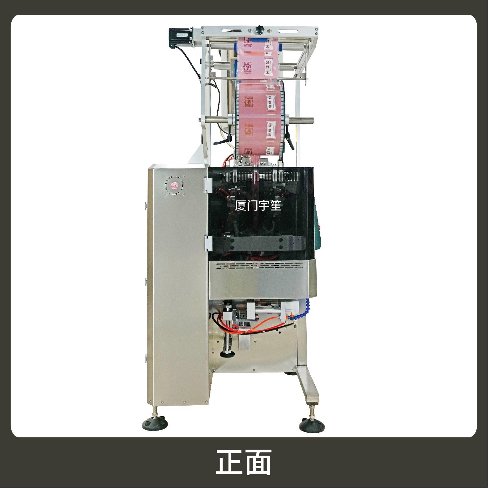 功能:可自動完成下料、制袋、計量、充填、封合、分切、計數(shù),可根據(jù)需求配置打碼功能。采用觸摸屏操作PLC控制,驅(qū)動步進電機控制袋長,性能穩(wěn)定、調(diào)整方便、檢測準確。