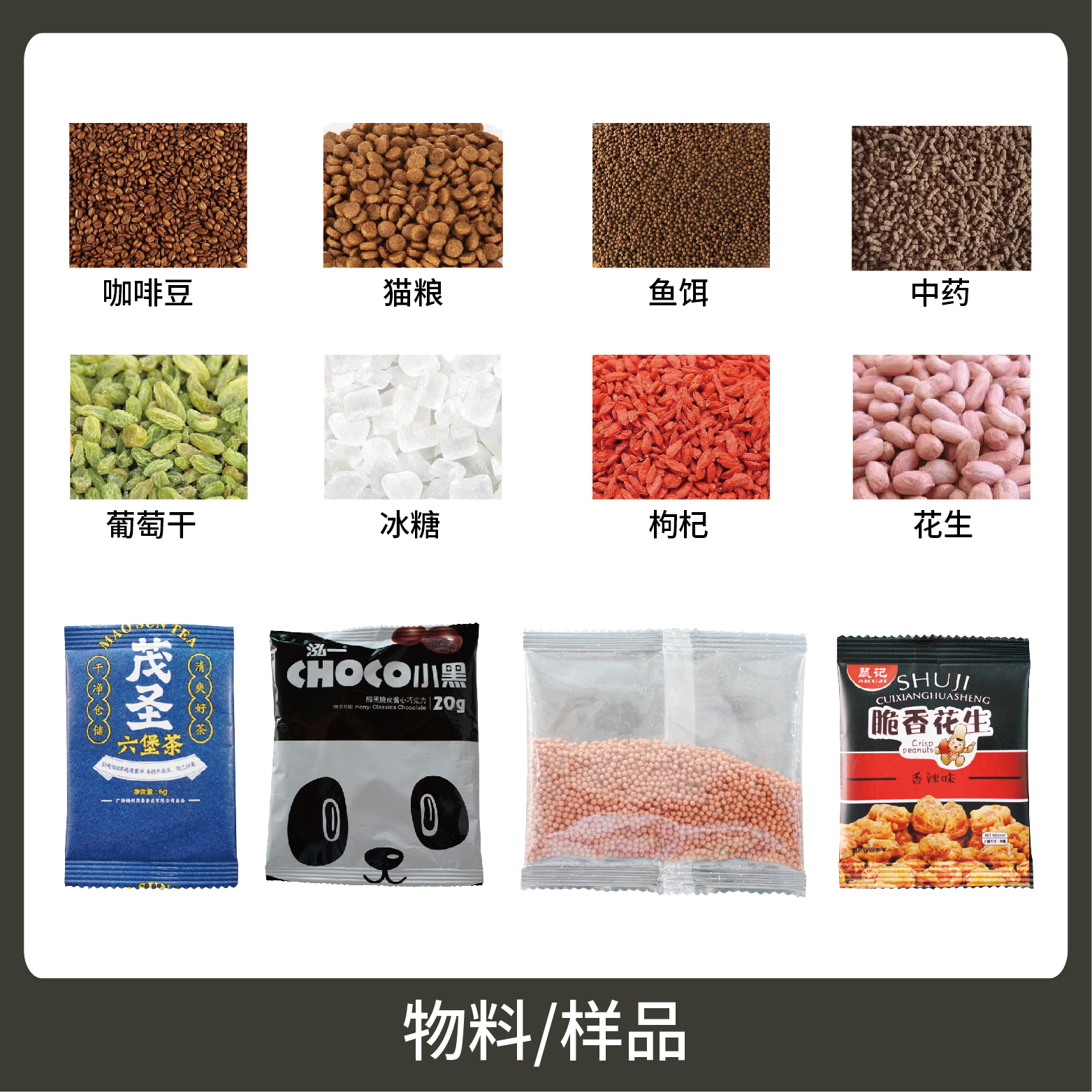 適用于各行業(yè)中堅果、炒貨、干果、餌料、中藥等顆粒狀物品的計量包裝。