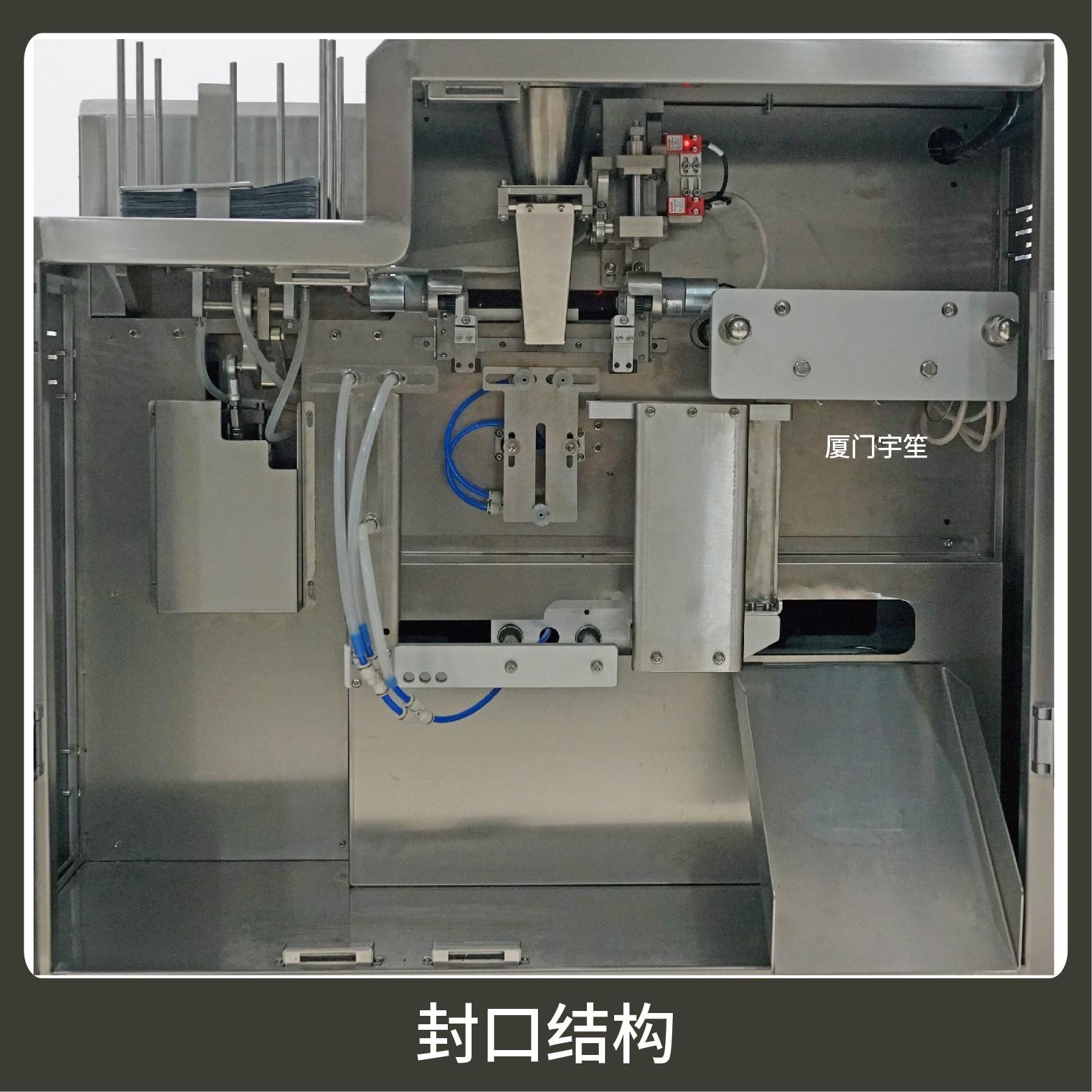 2、調(diào)試方便、占用空間小。包裝流程全自動(dòng),無(wú)需人工操作??筛鶕?jù)充填物料的性質(zhì)選配不同的下料結(jié)構(gòu)。