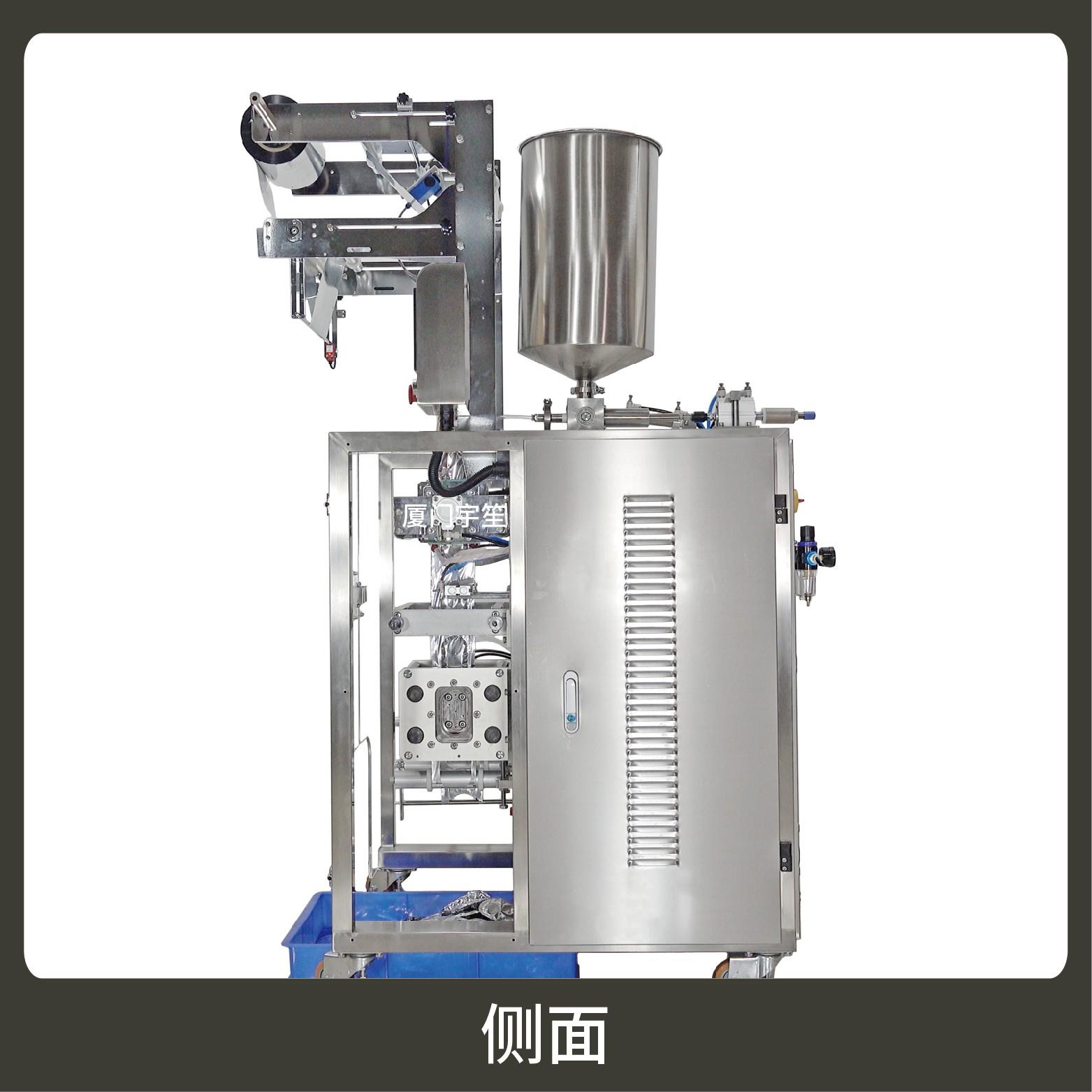 適用于食品、醫(yī)藥、化工、化妝品行業(yè)中液體、醬料等物品的計量包裝。可自動完成制袋、計量、下料、封合、分切、計數(shù)、且可根據(jù)客戶要求配置打印批號等功能。