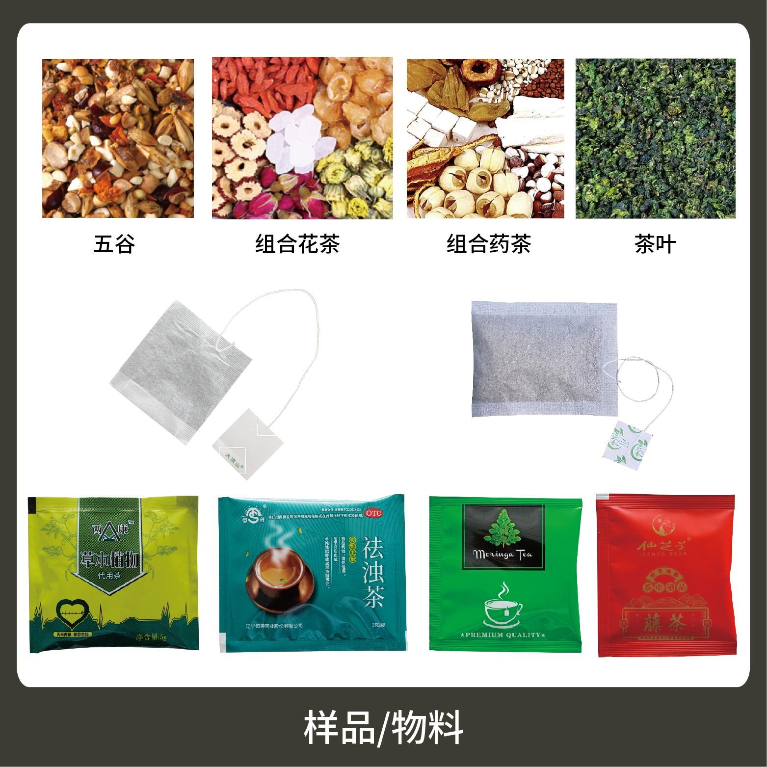 適用于茶葉、藥茶、保健茶草根類(lèi)等小顆粒物的內(nèi)外袋一次性包裝。